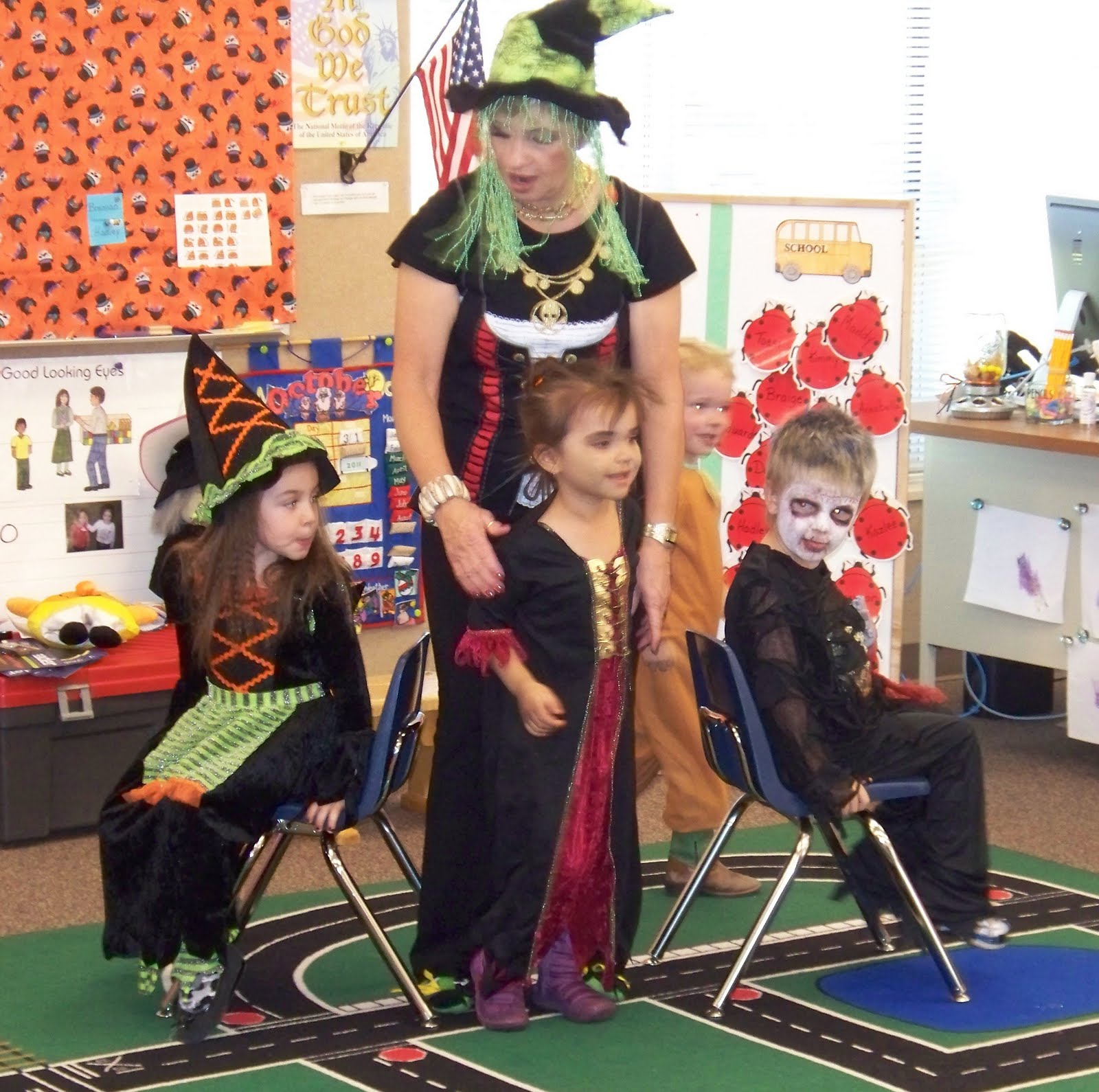 I was assigned as a helper on Dalley's preschool Halloween party. It was a lot of fun. I was instructed to make witches out of a pickle an olive and a piece of cheese. I had no idea how to do that so I just got mini cookie cutters and cut the cheese into Halloween shapes and put them on a toothpick with a pickle and an olive. The other moms went to a lot of work to make really cute treats for the kids. We played fun games and Dalley had a good time. He has such a great teacher and it she is also Dustin's aunt.